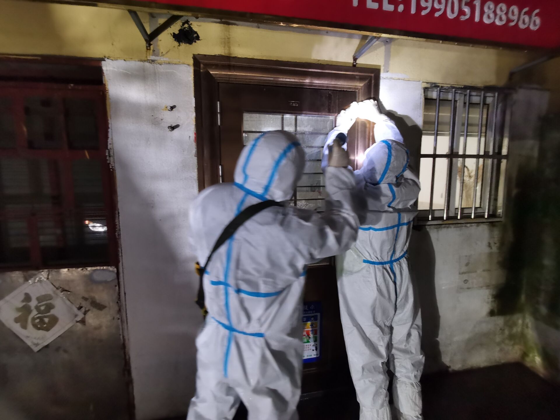 由于新橋社區(qū)多為自建房,門牌號混亂難找,房地產(chǎn)和資產(chǎn)公司的志愿者們冒雨堅守,逐戶排查登記信息,宣傳防護知識,講解防控要求,并對重點監(jiān)控住戶安裝防疫門磁。