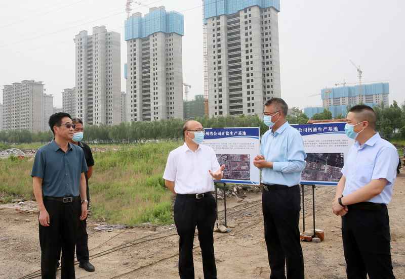 丁銳一行先后到海州灣公司礦鹵復(fù)產(chǎn)、翔立市政工程、海州灣工業(yè)園、鈣液生產(chǎn)區(qū)域和美多利科技創(chuàng)業(yè)園等現(xiàn)場(chǎng),詳細(xì)了解鹽業(yè)生產(chǎn)、項(xiàng)目建設(shè)、土地開(kāi)發(fā)、安全管理等情況,并為奮戰(zhàn)在一線的員工送去防暑降溫物品。