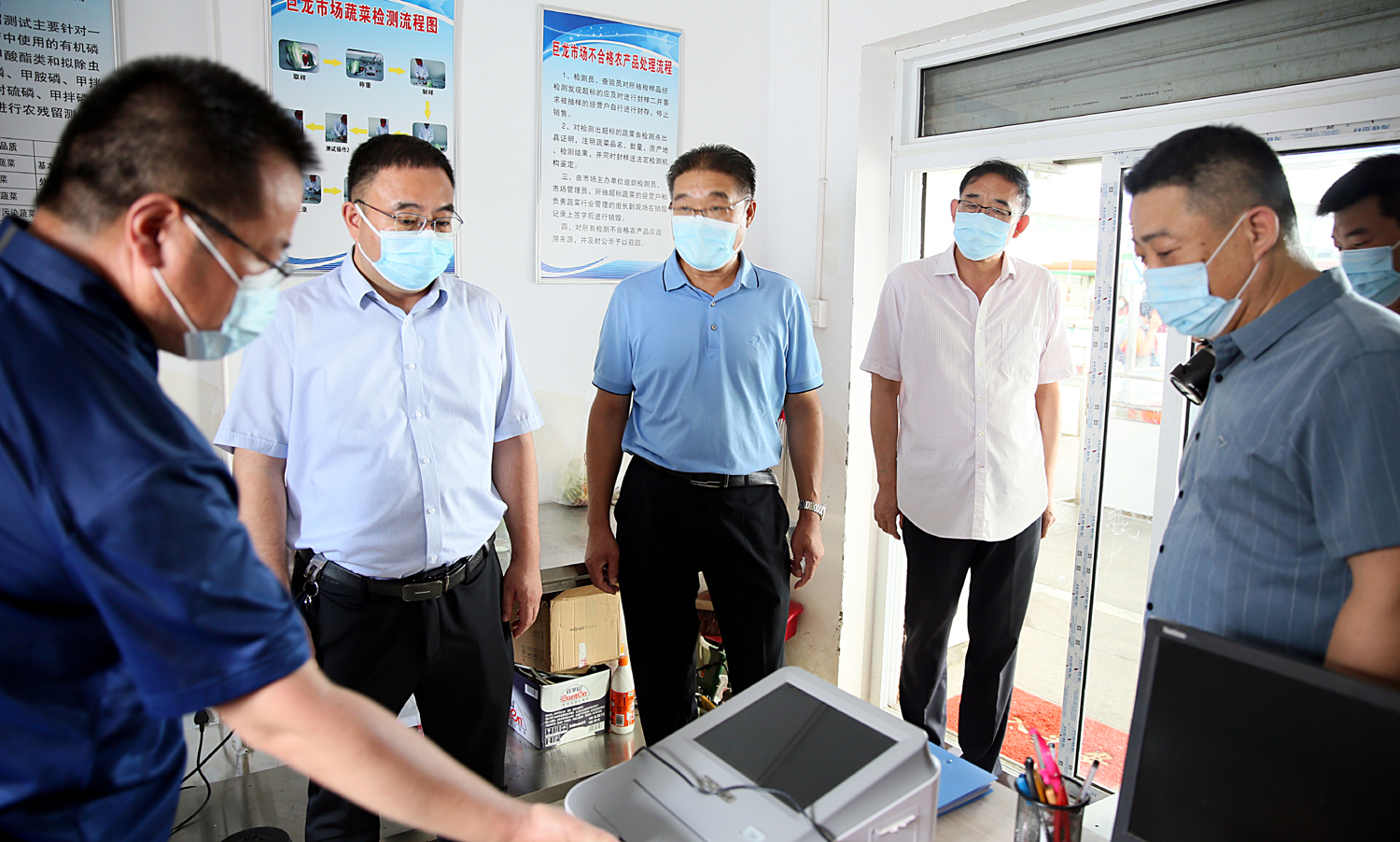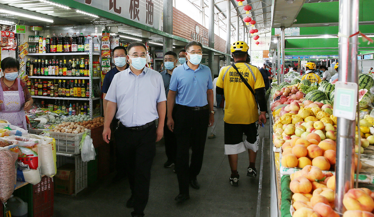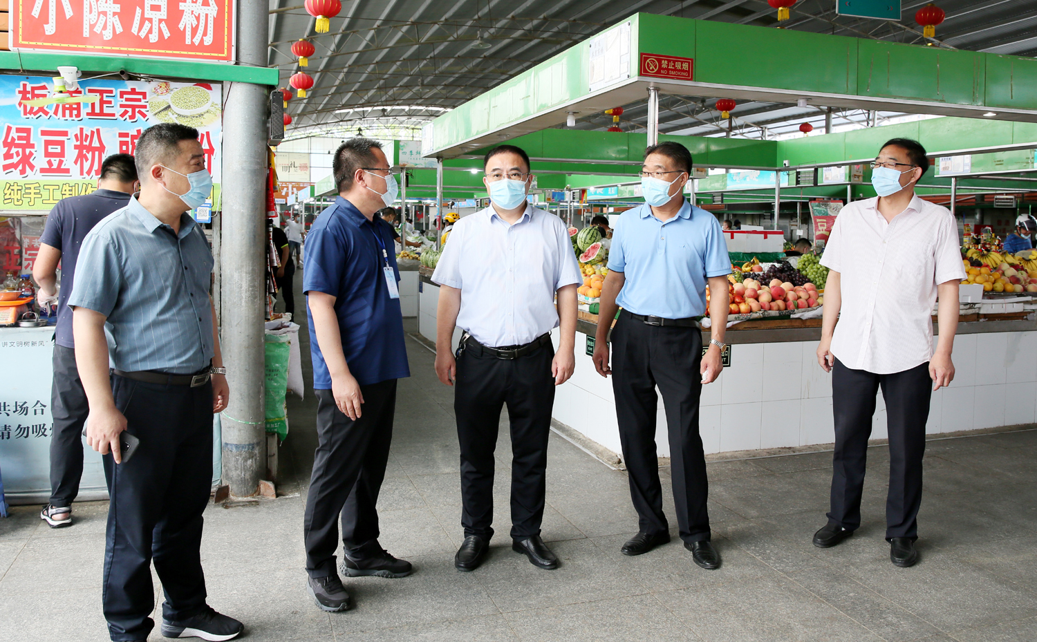 8月5日,集團(tuán)公司黨委書記、董事長、疫情防控領(lǐng)導(dǎo)小組組長楊龍深入巨龍農(nóng)貿(mào)市場督導(dǎo)疫情防控工作。他強(qiáng)調(diào),要深入貫徹中央、省市委疫情防控指示精神,保持疫情防控高壓態(tài)勢,抓實(shí)抓細(xì)抓嚴(yán)各項(xiàng)措施,守護(hù)好市民的“菜藍(lán)子”“米袋子”。集團(tuán)公司工會主席、疫情防控領(lǐng)導(dǎo)小組辦公室主任劉承志,金航資產(chǎn)經(jīng)營公司相關(guān)負(fù)責(zé)人陪同督導(dǎo)。 楊龍一行按防疫要求完成體溫測量、蘇康碼掃碼后,進(jìn)入市場區(qū)域,認(rèn)真察看市場內(nèi)口罩佩戴、掃碼查驗(yàn)、體溫檢測等基礎(chǔ)防疫措施,仔細(xì)詢問人員管控、防疫消殺等制度落實(shí)情況。查看了解糧油肉蛋奶及水果、蔬菜等重要食品的市場供應(yīng)、保質(zhì)穩(wěn)價(jià)等情況。楊龍指出,農(nóng)貿(mào)市場人員流動性大、接觸頻繁,是疫情防控的重要區(qū)域。金航公司要切實(shí)落實(shí)好主體責(zé)任,按照市疫情防控指示精神和集團(tuán)“十排查”“十到位”的要求,嚴(yán)格落實(shí)好各項(xiàng)措施,做好入口人員管理,嚴(yán)格落實(shí)體溫檢測、佩戴口罩、健康碼掃碼等工作,全面落實(shí)環(huán)境清潔消毒。要嚴(yán)把食品安全關(guān),嚴(yán)格履行相關(guān)手續(xù),確保食品流通各環(huán)節(jié)安全可控。要規(guī)范經(jīng)營,確保市場食品供應(yīng)充足、價(jià)格穩(wěn)定、消費(fèi)安全。同時(shí)要積極引導(dǎo)群眾和工作人員做好自我防護(hù),保持良好衛(wèi)生習(xí)慣,倡導(dǎo)健康生活方式。