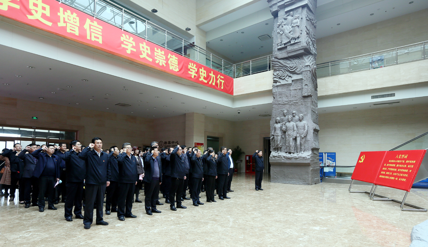 4月22日下午,集團(tuán)公司黨委在市革命紀(jì)念館舉辦“學(xué)史明理守初心、砥礪奮進(jìn)擔(dān)使命”黨性教育實(shí)境課堂。集團(tuán)黨委班子成員,各單位黨建、紀(jì)檢、工會(huì)分管領(lǐng)導(dǎo)、黨群工作部(學(xué)教辦)負(fù)責(zé)人,集團(tuán)總部助理以上管理人員80余人參加。 走進(jìn)市革命紀(jì)念館,在鮮紅的黨旗下,全體黨員舉起右拳,重溫入黨誓詞,鏗鏘有力的誓詞,進(jìn)一步激發(fā)黨員干部牢記黨的初心和使命。在紀(jì)念館展室,大家認(rèn)真看、仔細(xì)聽,通過歷史文獻(xiàn)、革命文物、新聞圖片和視頻資料,真切感受到中國(guó)共產(chǎn)黨領(lǐng)導(dǎo)海屬地區(qū)人民在五四運(yùn)動(dòng)、土地革命、抗日戰(zhàn)爭(zhēng)、解放戰(zhàn)爭(zhēng)時(shí)期血與火的革命斗爭(zhēng)史。