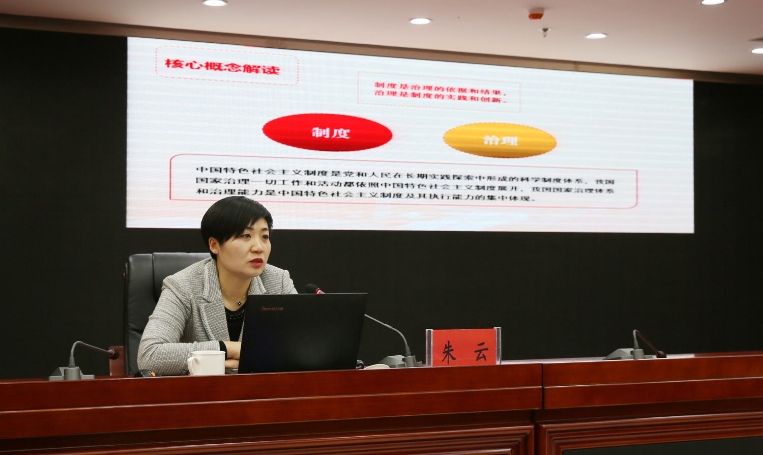 朱云以“開辟中國之治新境界”為題,緊緊圍繞黨的十九屆四中全會精神,系統(tǒng)闡述和深入解讀了堅持和完善中國特色社會主義制度、推進國家治理體系和治理能力現(xiàn)代化的重大意義、總體要求、總體目標、重點任務。宣講報告聚焦重點和關鍵,將理論與實際、案例與數(shù)據(jù)相結(jié)合,內(nèi)涵豐富、論述精辟、通俗易懂,令與會人員深受啟迪,倍受教育。