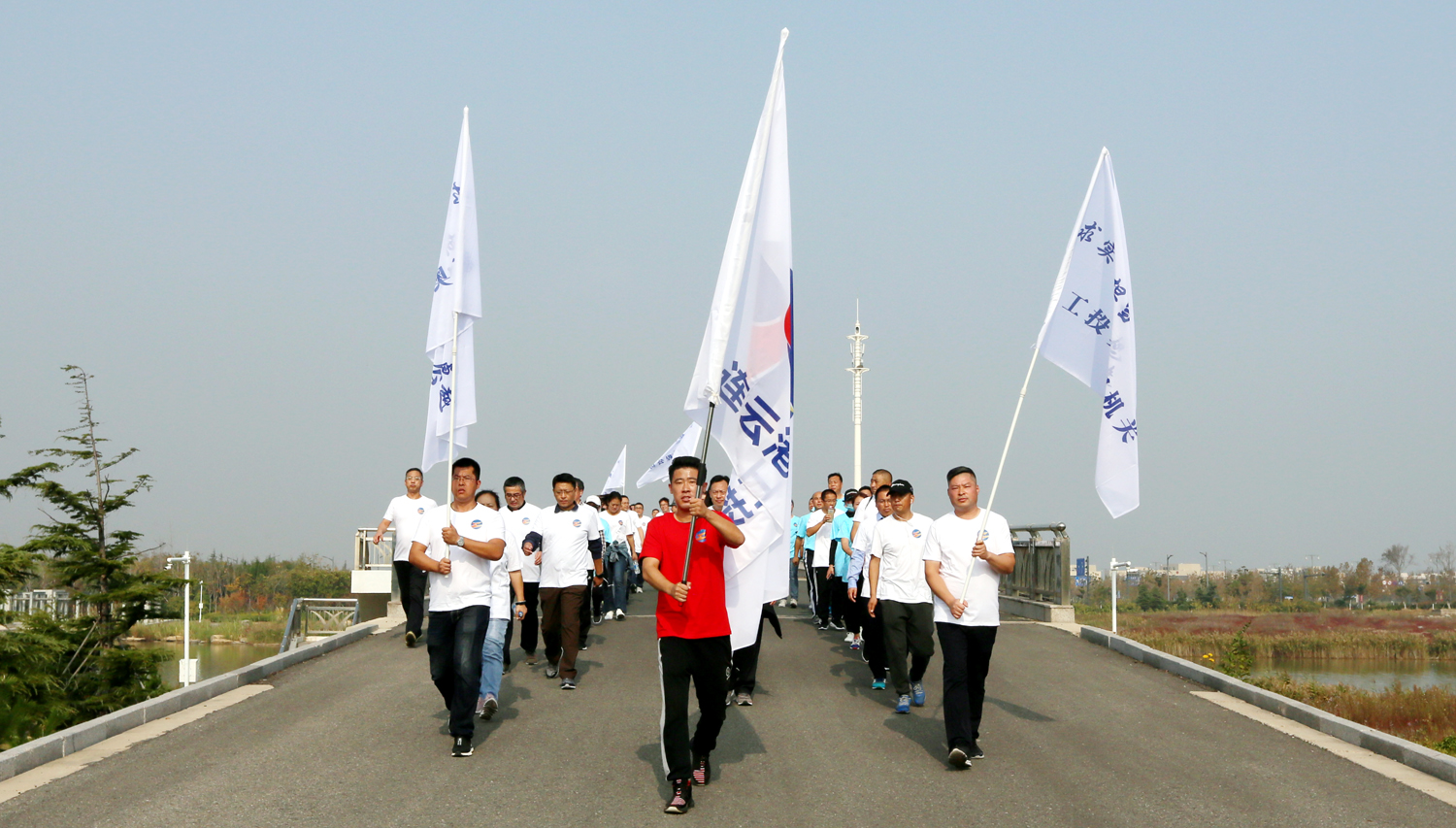 金秋十月,丹桂飄香。10月24日上午,美麗的徐圩新區(qū)云湖廣場彩旗招展,歌聲飛揚,為慶祝中華人民共和國成立70周年,豐富職工業(yè)余文化生活,由集團公司、集團公司工會主辦,徐圩投資公司承辦的集團第二屆職工健身運動會開幕式暨健步走活動在這里隆重舉行。集團公司黨委書記、董事長楊龍宣布第二屆職工健身運動會開幕,并為健步走活動發(fā)令??偨?jīng)理胡建明致開幕詞。工會主席劉承志主持開幕式。 本次運動會圍繞“美麗中華·文明工投·快樂職工”活動主題,來自全公司各條戰(zhàn)線的17支代表隊1200多人次的運動員參加拔河、跳繩、乒乓球、健步走等項目的角逐。他們以勇奪第一、超越自我的競賽精神和攜手奮進、合力拼搏的競賽風尚,充分展示工投人追求卓越、共建和諧的優(yōu)秀精神風貌。本次運動會將對個人單項比賽前六名、集體項目比賽前三名及道德風尚獎獲得者給予表彰。