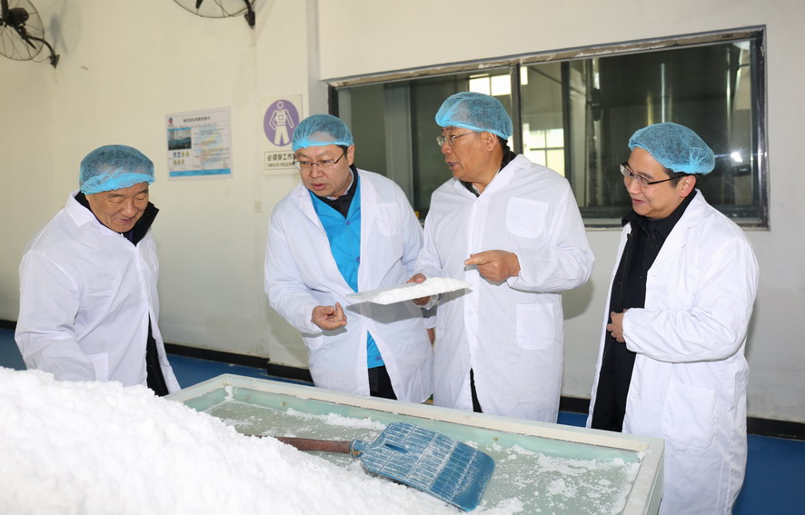12月29日,中國鹽業(yè)協(xié)會(huì)理事長茆慶國一行到集團(tuán)公司調(diào)研鹽業(yè)生產(chǎn)情況。集團(tuán)公司常務(wù)副總經(jīng)理?xiàng)顕屡阃?/span>