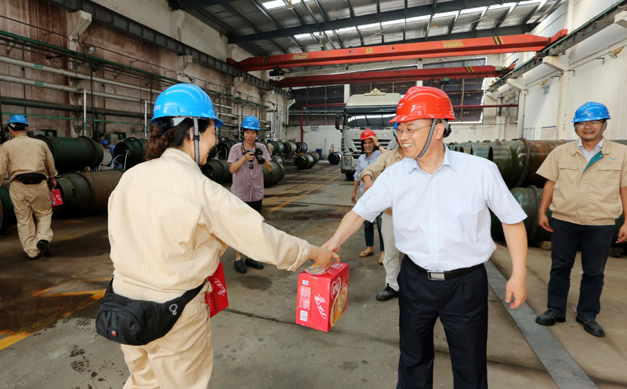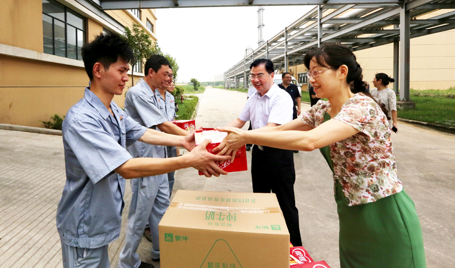 炎炎夏日送清涼,點(diǎn)滴關(guān)愛暖人心。連日來,驕陽似火,酷暑難耐。7月18-20日,集團(tuán)公司領(lǐng)導(dǎo)楊龍、胡建明、張其海、朱天松、戴鴻鳴、汪群、匡友本等輕車簡(jiǎn)從,分赴基層一線,進(jìn)車間、入工地、到灘(田)頭,慰問在高溫下堅(jiān)守崗位的廣大員工,送去綠豆、白糖等防暑降溫品,在炎炎夏日中將“清涼”送到職工心坎上。