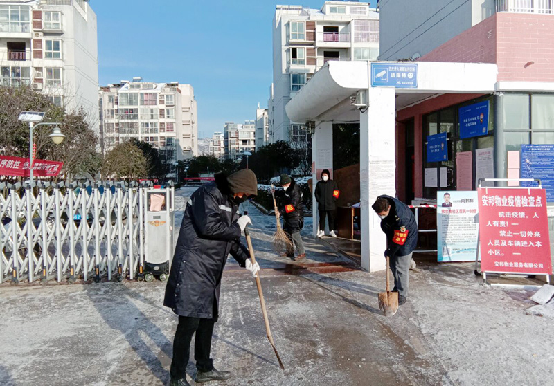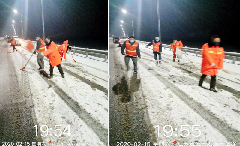 2月15日晚18:00時,徐圩悅升公司班子成員及各分公司黨政負(fù)責(zé)人全員出動,帶領(lǐng)18名突擊隊員快速趕赴新區(qū)上海路、徐圩大道、徐新路、金港路等主要交通要道,連續(xù)奮戰(zhàn)4個多小時,對橋梁、彎道等重點防滑路段進(jìn)行清雪防凍處理,共鋪灑融雪劑10余噸。“香河情緣、幸福家園”兩個職工小區(qū)防控疫情值守人員,不懼嚴(yán)寒,冒著大雪,在小區(qū)加強巡邏防控。該公司應(yīng)急大隊按照徐圩新區(qū)防疫指揮部要求,配合社區(qū)對珠江鋼管相關(guān)路道進(jìn)行封閉管控。