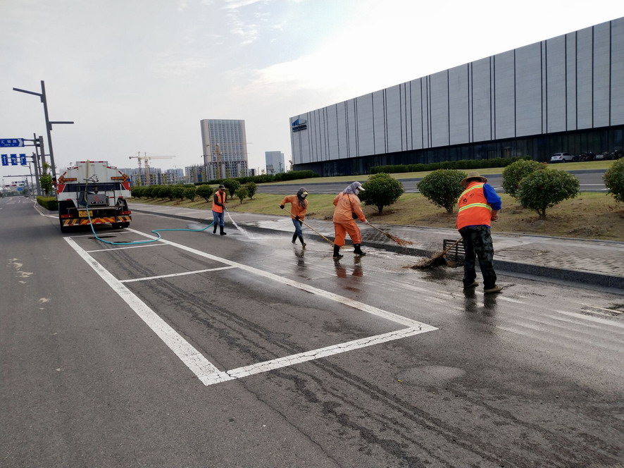 加強道路保潔工作力度,確保環(huán)境整治無盲區(qū)。公司在重點路段、交通要道、商業(yè)街區(qū)等人流密集區(qū)增加作業(yè)人員,延長作業(yè)時間,從每天凌晨6點到晚上8點,加強人工撿拾巡查保潔力度,重點關(guān)注機掃不到的角落和即時產(chǎn)生的垃圾。重點對花果山大道、東方大道、黃海大道242省道等路段進行多方位巡視,做好城市家居、路燈桿、橋梁桿的擦洗修補噴漆作業(yè),發(fā)現(xiàn)路面有拋灑、雜物等立即進行清理,保障道路交通安全無阻。