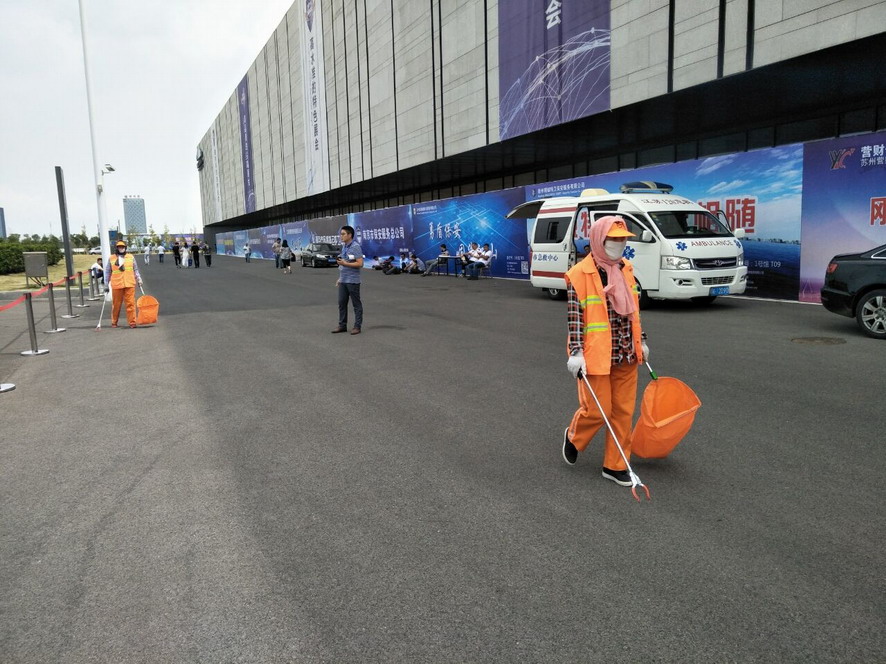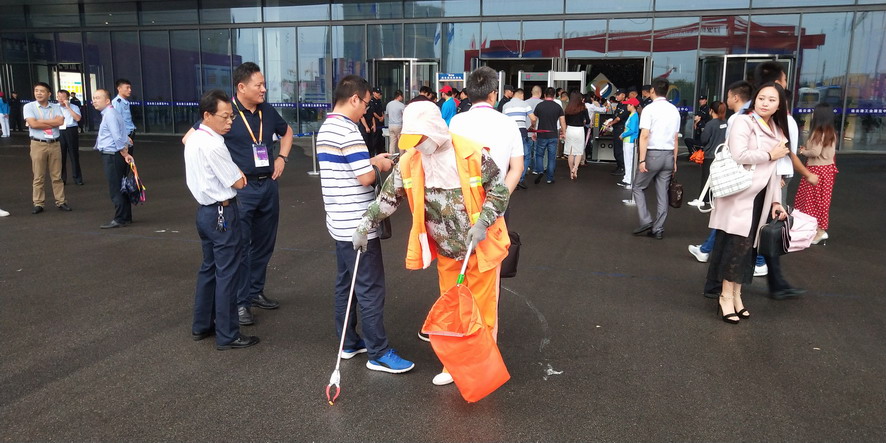 914日,連續(xù)忙碌了兩個(gè)禮拜的職工們還沒來得及休息,便又投入到“連博會(huì)”的準(zhǔn)備工作中去。由于本屆“連博會(huì)”共有來自27個(gè)國(guó)家和地區(qū)的420家企業(yè)參展,展覽總面積達(dá)3.7萬平方米,各家展商在布置展臺(tái)時(shí),各類生活垃圾、裝修垃圾等一度將該公司布設(shè)的100多個(gè)垃圾桶都塞滿了,在安排好人工清理的同時(shí),該公司還安排垃圾清運(yùn)車對(duì)積存垃圾進(jìn)行清理清運(yùn),組織灑水車對(duì)會(huì)場(chǎng)及周邊道路進(jìn)行沖洗,一直到918日晚上9點(diǎn)左右才完成準(zhǔn)備工作。19日“連博會(huì)”開幕當(dāng)天,負(fù)責(zé)現(xiàn)場(chǎng)保潔工作的職工們?cè)缟?/span>6點(diǎn)多就趕到了會(huì)場(chǎng),冒雨在會(huì)場(chǎng)周邊開始忙碌,一臺(tái)大型清掃車和一臺(tái)灑水車也在會(huì)場(chǎng)旁隨時(shí)待命。到了中午,當(dāng)展商們?cè)谑覂?nèi)小憩的時(shí)候,室外的職工們?yōu)榱瞬坏⒄`事,站在風(fēng)口匆匆地扒拉兩口混雜著雨水的盒飯,就又投入到緊張的清理工作中去。僅19號(hào)開幕當(dāng)天,累計(jì)清理各類垃圾7噸左右,為“連博會(huì)”的正常召開提供了一個(gè)干凈、整潔的會(huì)場(chǎng)環(huán)境。