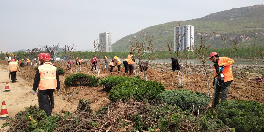 綠化工程施工緊鑼密鼓。公司承接的昌圩湖路移苗工程、242省道綠化恢復(fù)工程、江寧工業(yè)園242高速入口道路綠化補(bǔ)植工程、中科院環(huán)境提升改造工程等六項(xiàng)綠化工程,總價(jià)680多萬元,“五一”期間進(jìn)入施工關(guān)鍵期,裕升、裕欣、裕祥養(yǎng)護(hù)公司和益豐園林公司的技術(shù)骨干、綠化工人放棄假日休息,持續(xù)投入到緊張有序的施工之中,瑞泰服務(wù)公司、盛達(dá)市政公司水車、挖掘機(jī)、運(yùn)輸車等機(jī)械車輛緊密配合綠化工程施工,起苗、運(yùn)苗、上土、栽苗、搭架、澆水等環(huán)節(jié)緊扣,每一個(gè)作業(yè)現(xiàn)場(chǎng)都是一幅人頭攢動(dòng)、車來人往的忙碌勞動(dòng)畫面。