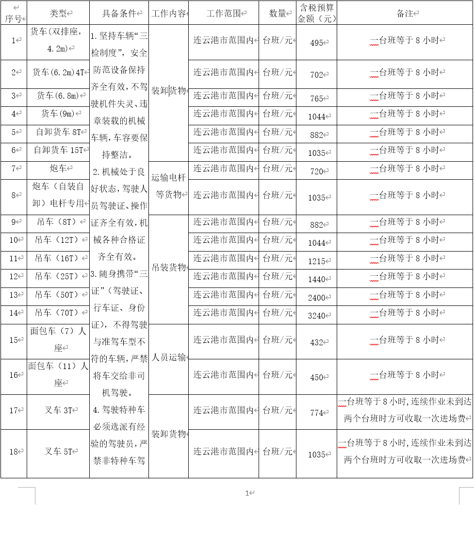 2.采購內(nèi)容:連云港工投集團(tuán)供電工程分公司機(jī)械、車輛租賃