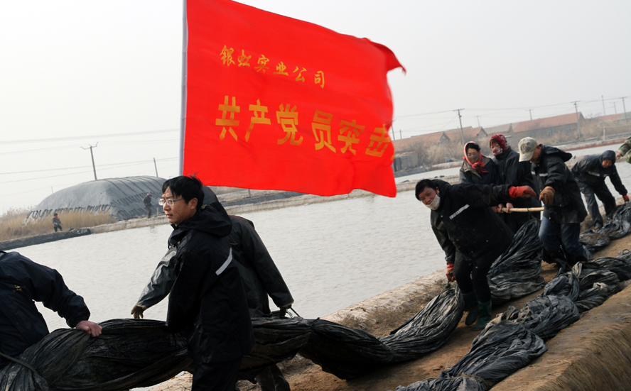 11月16日,一面紅色的黨員志愿者服務隊隊旗在陽光下飄展,在一片雪白結晶池埝的映襯下,顯得格外鮮艷。徐圩投資公司深港服務區(qū)12名黨員志愿者頂著寒冷的晨風,緊忙趕往新灘服務區(qū)原料鹽基地建設現場,幫助其12個單元搶裝池埝土工布,也為這個冬天添加幾許新鮮的氣息。
