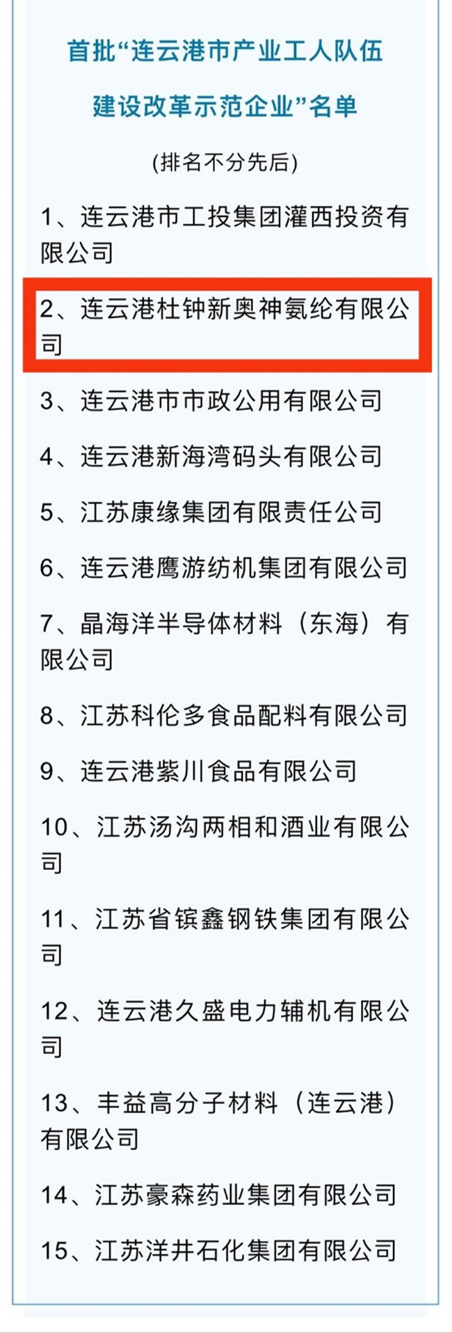 此次評選活動由連云港市產改辦組織開展,旨在進一步提升產改試點的標桿引領作用,增強產改試點的輻射效應,激發(fā)產改試點改革潛力,促使更多產改“試點企業(yè)”升級為“示范企業(yè)”。經(jīng)基層單位申報、推薦單位初審、征求市聯(lián)席會議成員單位意見、市產改辦綜合考察后,產生了首批15家“示范企業(yè)”。