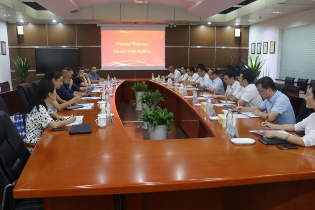 張斌董事長首先歡迎INDITEX集團一行人的到來,介紹了杜鐘氨綸公司發(fā)展史及在可持續(xù)新產(chǎn)品開發(fā)應用前景發(fā)展方面戰(zhàn)略規(guī)劃的基本情況;INDITEX集團及旗下品牌ZARA也向我們展示了其產(chǎn)品創(chuàng)新和在可循環(huán)發(fā)展的經(jīng)營思路,對公司再生GRS產(chǎn)品、生物基、消費后氨綸再生產(chǎn)品的發(fā)展產(chǎn)生濃厚興趣,對公司在可持續(xù)再生產(chǎn)品的研發(fā)能力表達認可及合作意向。