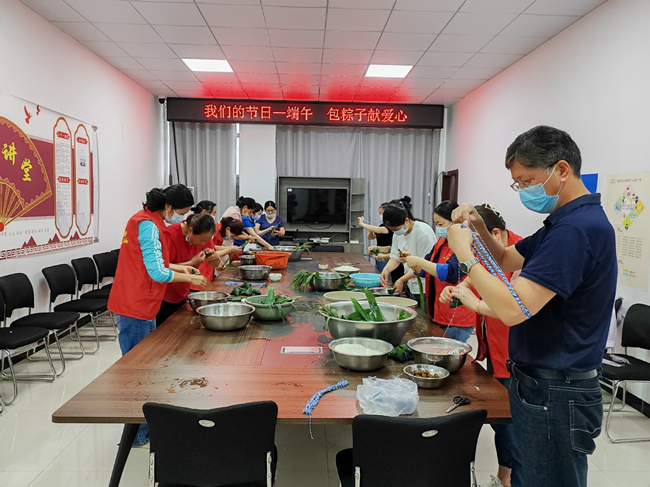 活動中,公司員工與社區(qū)居民共同開展包粽子比賽,期間公司領(lǐng)導(dǎo)詢問了社區(qū)工作情況,雙方就新時代黨建引領(lǐng)下的社企共建工作進行了深入交談并為社區(qū)空巢老人和困難群眾送上了粽子、大米、牛奶、食用油等慰問品。