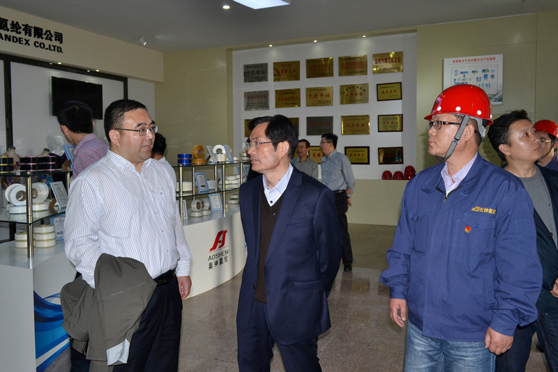 徐丙超主任一行先后參觀了公司展廳、七期生產(chǎn)現(xiàn)場(chǎng)、倉(cāng)庫(kù)等地,聽(tīng)取了企業(yè)介紹,并饒有興趣地詢(xún)問(wèn)了解了關(guān)于氨綸生產(chǎn)工藝、流程、市場(chǎng)、應(yīng)用等方面的信息。