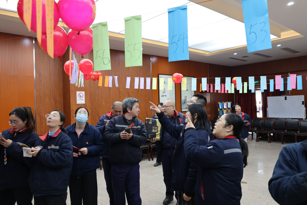 活動現(xiàn)場張燈結(jié)彩,氣氛熱烈,一條條精心設(shè)計的廉政謎語高高懸掛,既有與黨紀(jì)法規(guī)、黨風(fēng)廉政相關(guān)的專業(yè)詞匯,也有寓意深刻的廉潔故事和成語典故。如“反腐倡廉長抓不懈”打一地名,謎底是“長治”;“把守關(guān)口兩門神”則巧妙地對應(yīng)了“一崗雙責(zé)”這一廉政詞語。參與活動的職工們興致勃勃地圍在一起,或低頭沉思,或相互討論,不時傳來陣陣歡聲笑語。