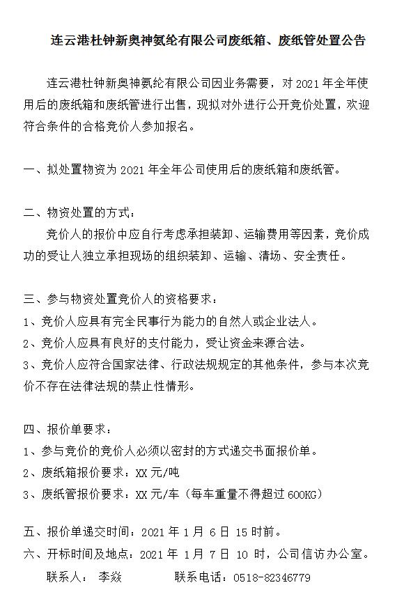 廢紙箱處理招標(biāo)公告