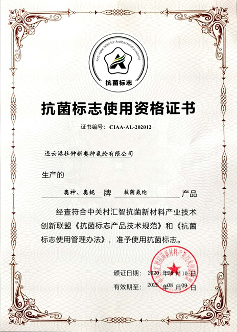 杜鐘氨綸作為CIAA會員,國內唯一一家通過“抗菌標志”認證的氨綸供應商,持續(xù)致力于疫情防護,為推動健康中國建設,提高人民健康水平做貢獻。