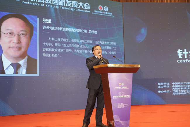 12月4日,由中國(guó)紡織工程學(xué)會(huì)針織專業(yè)委員會(huì)、無(wú)錫市科協(xié)主辦,江南大學(xué)針織技術(shù)教育部工程研究中心、無(wú)錫市紡織工程學(xué)會(huì)承辦的2020針織科技創(chuàng)新發(fā)展大會(huì)在無(wú)錫舉行,奧神®氨綸公司總經(jīng)理張斌帶隊(duì)參加了本次大會(huì),并作題為《健康功能性氨綸的開發(fā)和應(yīng)用》的報(bào)告。