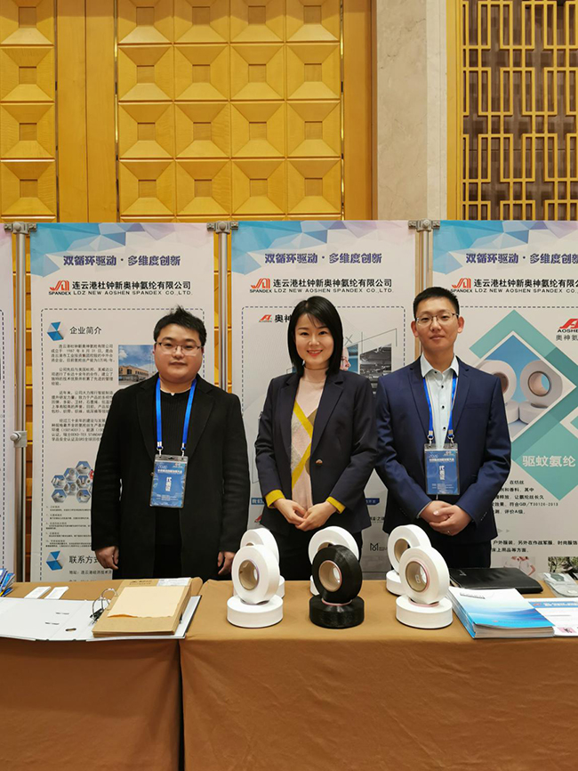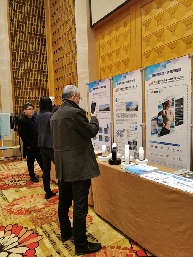 會(huì)議期間,奧神®差別化功能性氨綸產(chǎn)品展示區(qū)吸引了大量參會(huì)者駐足,與會(huì)者對(duì)奧神®抗菌防臭、芳香驅(qū)蚊、低溫?zé)嵴澈系认盗泄δ苄园本]產(chǎn)品產(chǎn)生了濃厚的興趣,詳細(xì)詢問(wèn)了產(chǎn)品性能、后道工藝參數(shù)及注意事項(xiàng),并就抗病毒、中藥保健等代表氨綸創(chuàng)新發(fā)展方向的產(chǎn)品進(jìn)行交流,部分達(dá)成了初步的合作意向,為共同開發(fā)健康功能性服飾打下基礎(chǔ)。