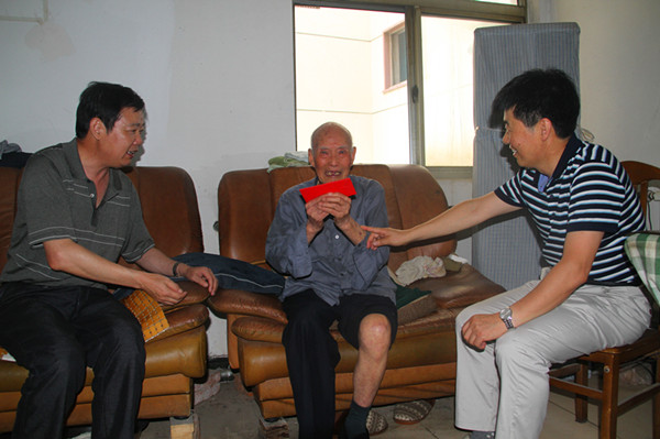722下午,公司領(lǐng)導(dǎo)盧明生、王志軍前往全國(guó)勞模鄭友根家中看望慰問(wèn),詢問(wèn)百歲老人的生活情況和存在的實(shí)際困難,為他送去了水果和困難救助金,感謝老人為鹽業(yè)系統(tǒng)作出的貢獻(xiàn)。(徐靜)