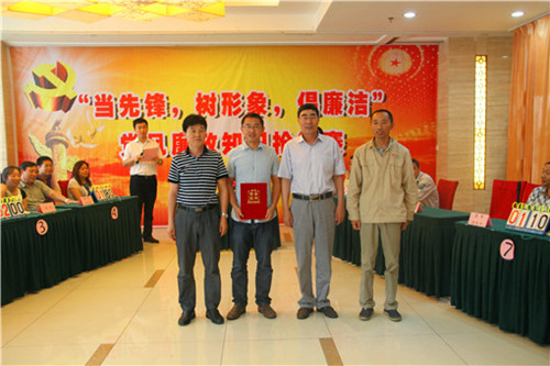 6月30日,公司在淮鹽大酒店一樓大廳舉辦了“當(dāng)先鋒,樹形象,倡廉潔”為主題的黨風(fēng)廉政知識(shí)搶答賽。公司領(lǐng)導(dǎo)及機(jī)關(guān)、淮鹽、農(nóng)場(chǎng)、市場(chǎng)全體黨員干部觀看了比賽。