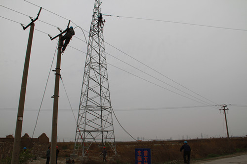 35KV東管線改造工程是我公司為解決徐南公司生產(chǎn)經(jīng)營和居民生活用電緊張而實(shí)施的一項(xiàng)便民工程,技術(shù)要求高,施工難度大。為此,公司領(lǐng)導(dǎo)高度重視,從各供電所挑選精兵強(qiáng)將,組織了40余人的施工隊(duì)伍,公司副書記、副經(jīng)理盧明生、副經(jīng)理袁慶國親臨現(xiàn)場(chǎng),指導(dǎo)施工。經(jīng)過全體干群努力奮戰(zhàn),首次成功架設(shè)了35KV線路2.1公里,近30米高的角鋼電力鐵塔。(政工 朱兵)