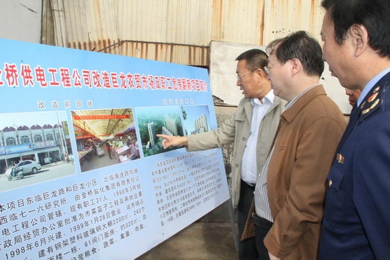 在巨龍農(nóng)貿(mào)市場(chǎng),范總向秦國(guó)丞副秘長(zhǎng)簡(jiǎn)要匯報(bào)了巨龍農(nóng)貿(mào)市場(chǎng)的基本情況以及改造方案,通過(guò)改造實(shí)現(xiàn)市場(chǎng)空間布局合理化、設(shè)施建設(shè)標(biāo)準(zhǔn)化、長(zhǎng)效菅理規(guī)范化的總體目標(biāo)。秦國(guó)丞副秘書長(zhǎng)對(duì)公司巨龍農(nóng)貿(mào)市場(chǎng)的改造方案給予較高評(píng)價(jià),充分肯定了公司在創(chuàng)建國(guó)家文明衛(wèi)生城市、加強(qiáng)我市菜藍(lán)子工程建設(shè)、提升群眾幸福指數(shù)方面作出的貢獻(xiàn);同時(shí),要求我公司繼續(xù)深入調(diào)研,盡快制定具體實(shí)施方案,報(bào)政府部門審批;并指示隨行的有關(guān)部門人員,要給予全力配合,對(duì)改善民生工程開(kāi)綠燈。(司宣 盧正清)