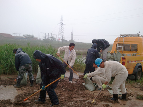 徐圩供電所接到防風(fēng)防暴指令后,立即組織全所人員進(jìn)入應(yīng)急防汛狀態(tài)。