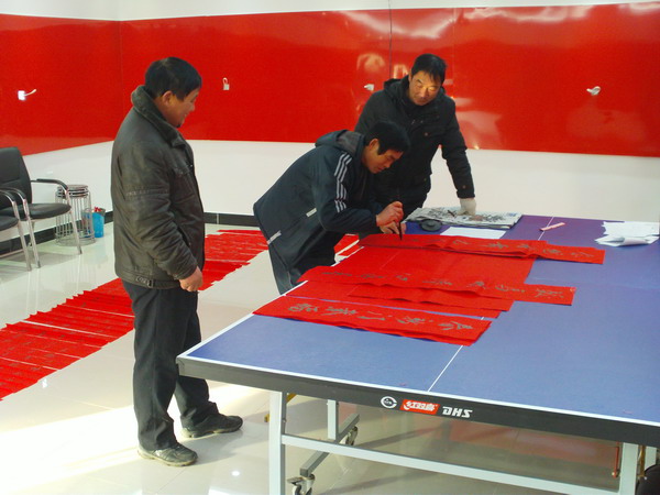本次活動以“健康快樂,平安幸?!睘橹黝},并在一場緊張激烈的撲克牌摜蛋比賽中拉開序幕,隨后又開展了義務“寫春聯(lián)”贈送活動。在義務“寫春聯(lián)”活動中,該所副所長胡維華同志揮毫潑墨,書寫春聯(lián)100多副,獲得了大家的一致好評,營造了歡樂祥和喜慶的節(jié)日氣氛。