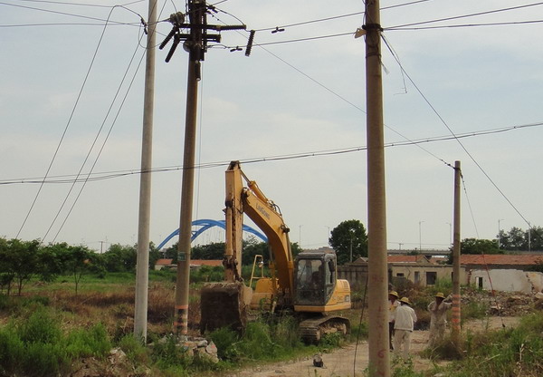 當(dāng)日上午9時(shí),室外溫度高達(dá)35攝氏度,板橋、板橋工業(yè)園等片區(qū)突發(fā)停電。人們被迫從空調(diào)房中走出來,匆匆忙忙尋找避暑的地方。臺南供電所負(fù)責(zé)人接到報(bào)告后,迅速啟動應(yīng)急搶修預(yù)案,并立即安排人員分頭查找停電原因。經(jīng)過認(rèn)真巡視檢查,終于發(fā)現(xiàn)了停電原因:金港灣物流園“板橋線”75#變壓器附近的59#電桿,由于挖掘機(jī)施工時(shí)操作失誤而倒地,并導(dǎo)致同向4根線桿倒地?cái)嗔眩斐奢爡^(qū)內(nèi)大面積停電。要恢復(fù)正常供電,必須重新架設(shè)電桿。于是,該所領(lǐng)導(dǎo)立即通知相關(guān)工作人員,組織準(zhǔn)備相關(guān)設(shè)備、器材。10時(shí)許,副所長朱兵帶領(lǐng)搶修人員和準(zhǔn)備齊全的設(shè)備器材,趕往現(xiàn)場進(jìn)行搶修。
