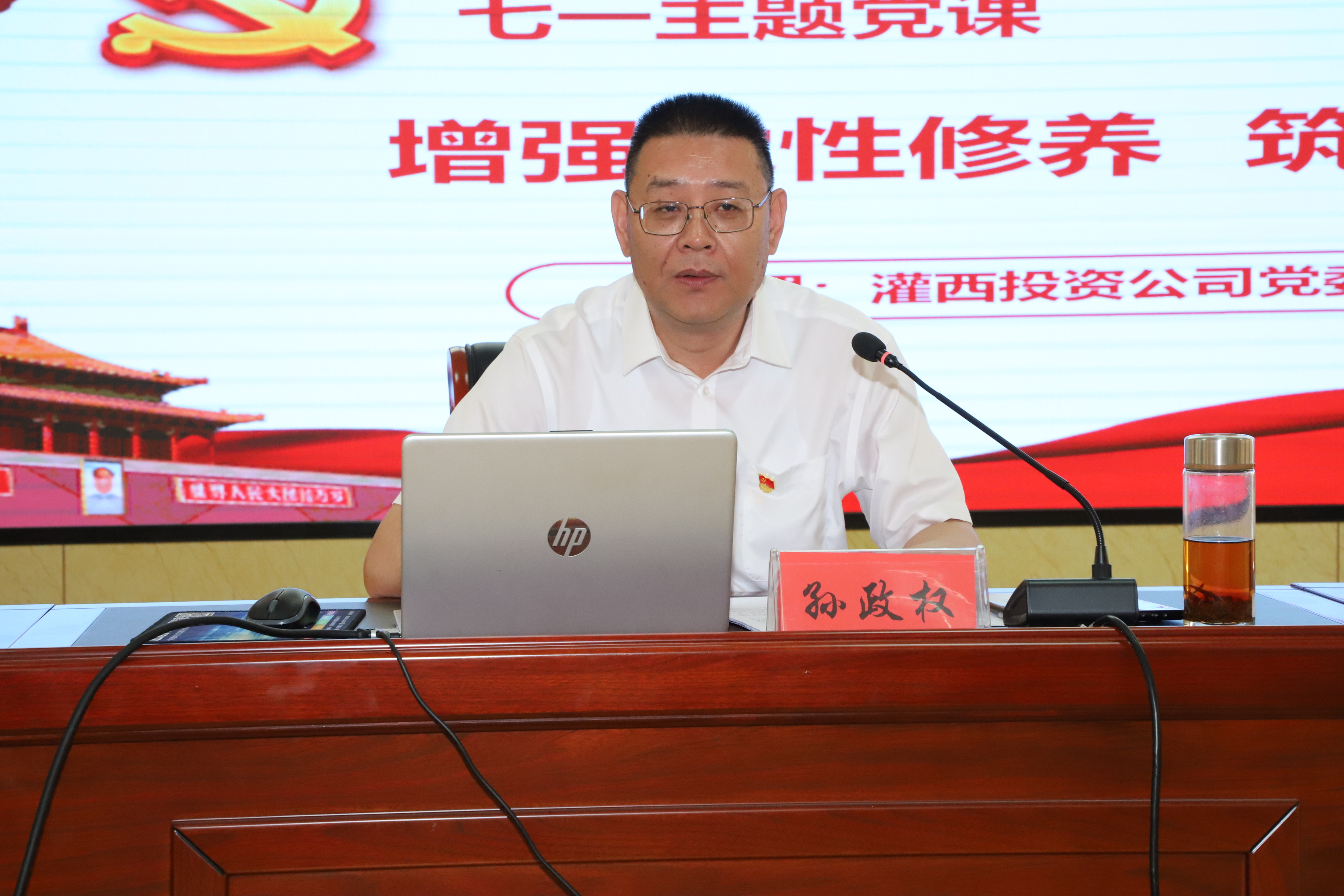 為深入學(xué)習(xí)貫徹黨的二十大精神,熱烈慶祝中國共產(chǎn)黨成立102周年,6月30日上午,灌西投資公司黨委舉辦慶祝建黨102周年專題黨課暨表彰大會,公司領(lǐng)導(dǎo)班子成員、各單位副職級以上黨員、機(jī)關(guān)全體黨員、預(yù)備黨員、受表彰人員及特邀華能熱電公司黨員參加會議,公司黨委副書記、工會主席王宏主持會議。