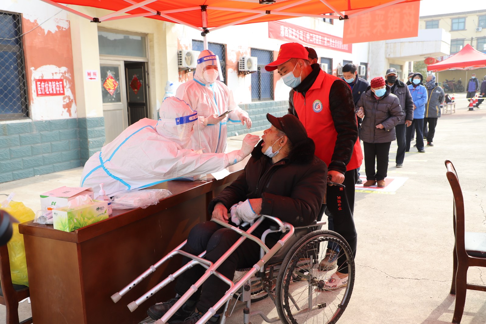檢測現(xiàn)場,各單位組織黨員先鋒隊成員、社區(qū)志愿者不斷優(yōu)化現(xiàn)場服務(wù),提醒居民群眾提前出示“蘇康碼”,有序排隊,讓等待時間更短一點、人員距離更遠(yuǎn)一點、個人防護(hù)更好一點。另一方面,灌西檢測點開設(shè)老者、孕婦、兒童綠色通道,減少這部分人群排隊等候的時間,同時安排志愿者攙扶、幫助不會使用智能手機(jī)的老年人,確保他們順利完成核酸檢測。