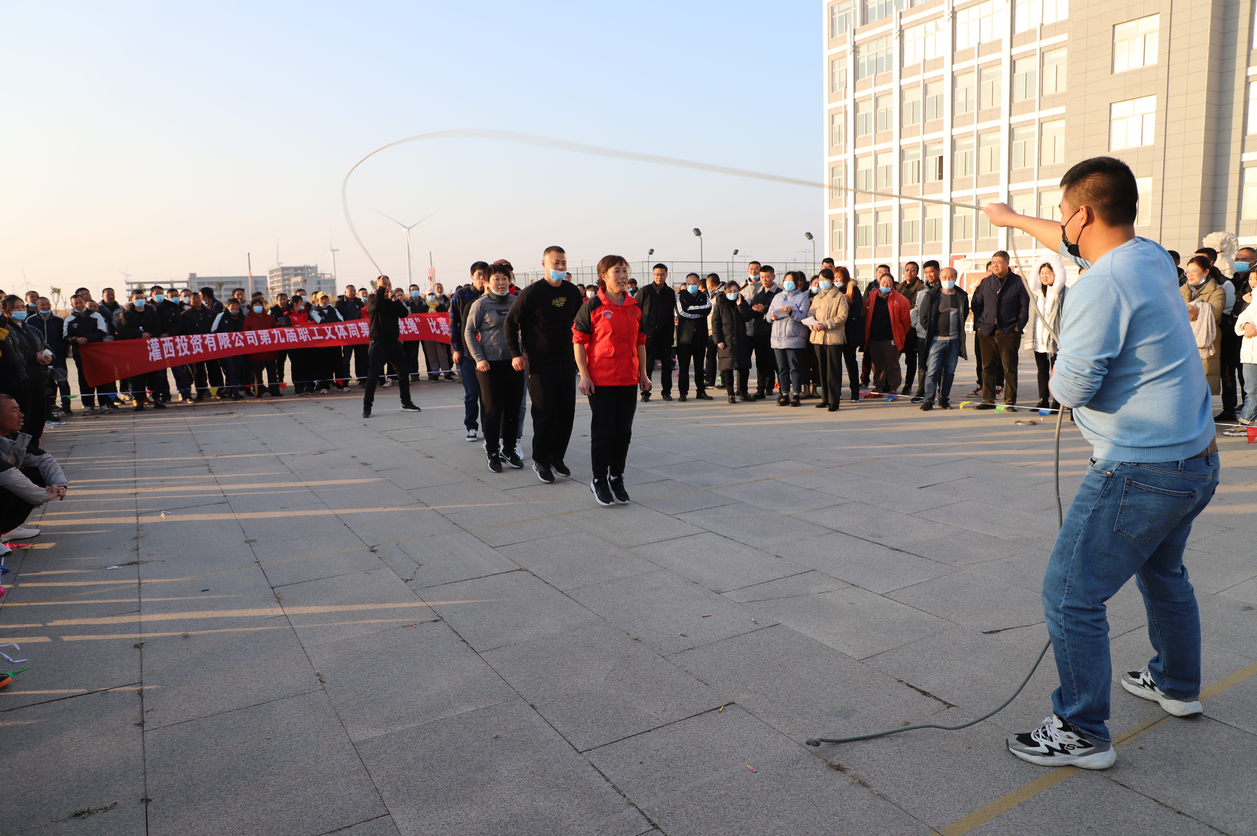 隨后進行跳繩比賽,來自南翼、新河、埒南等10支參賽隊伍逐一上臺比賽,觀眾隨著場上比賽隊員跳繩的節(jié)奏,不約而同地打著節(jié)拍、數(shù)著數(shù),最終埒南制鹽公司代表隊憑借刻苦訓練與創(chuàng)新——參賽隊員手牽手共同協(xié)作,奪得第一名,新河制鹽公司、宵洋物流公司、生產(chǎn)服務中心分獲二至四名。(西宣)