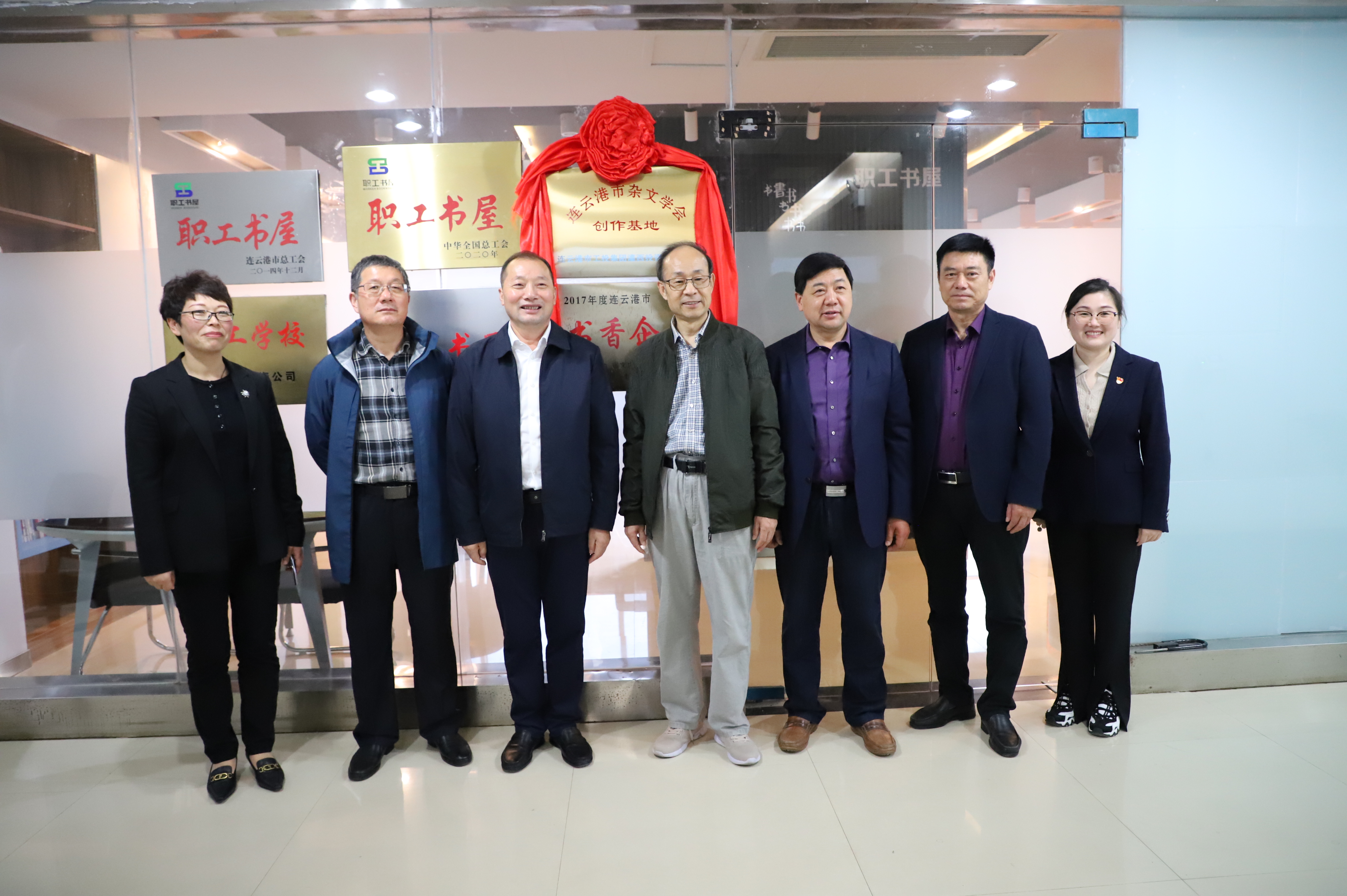 11月3日,連云港市雜文學(xué)會創(chuàng)作基地掛牌儀式在灌西投資公司職工書屋舉行,市雜文學(xué)會會長李正冬一行為灌西公司授牌,公司黨委書記、董事長、總經(jīng)理李國文,黨委副書記、工會主席王宏等參加掛牌儀式。