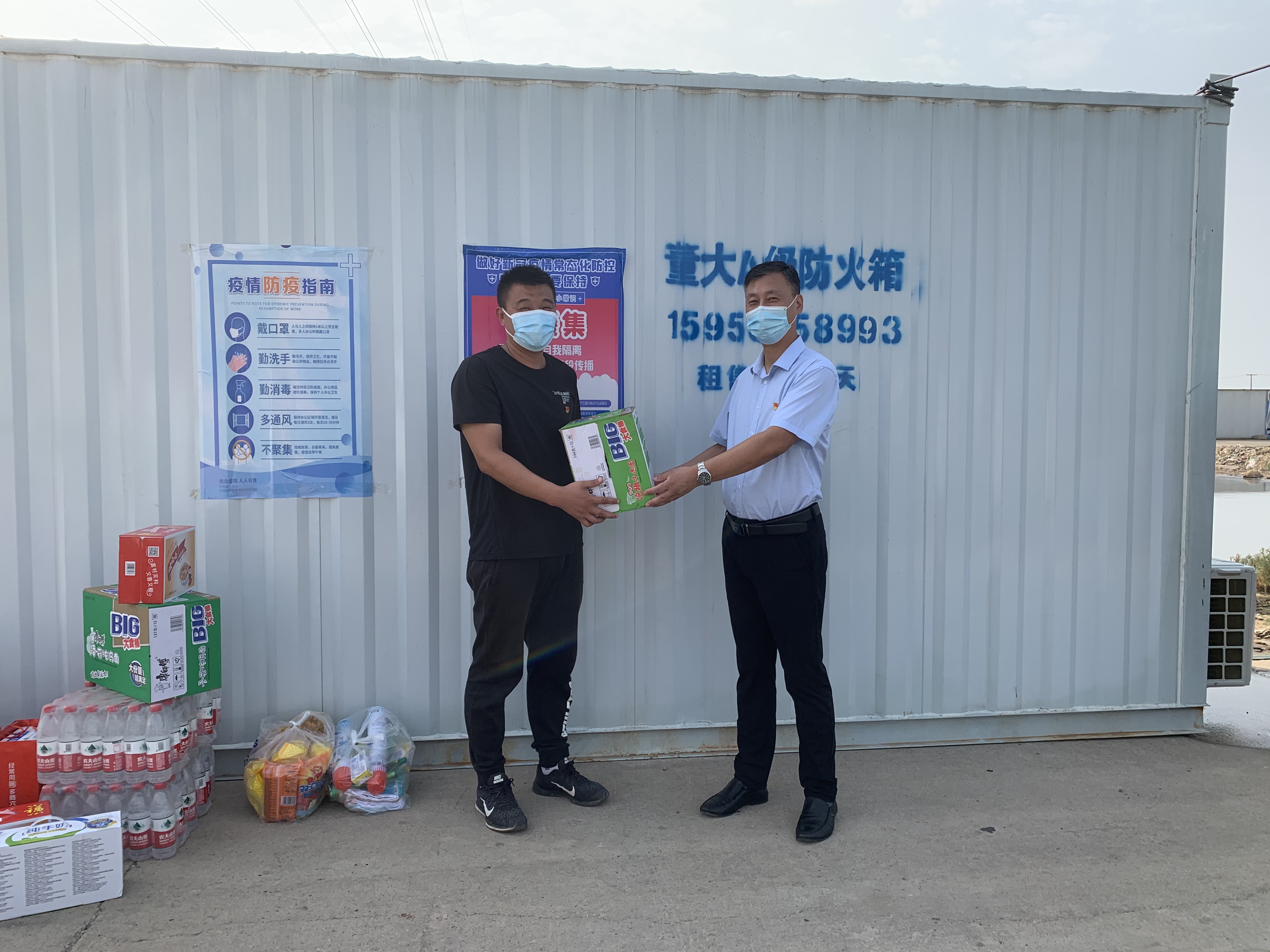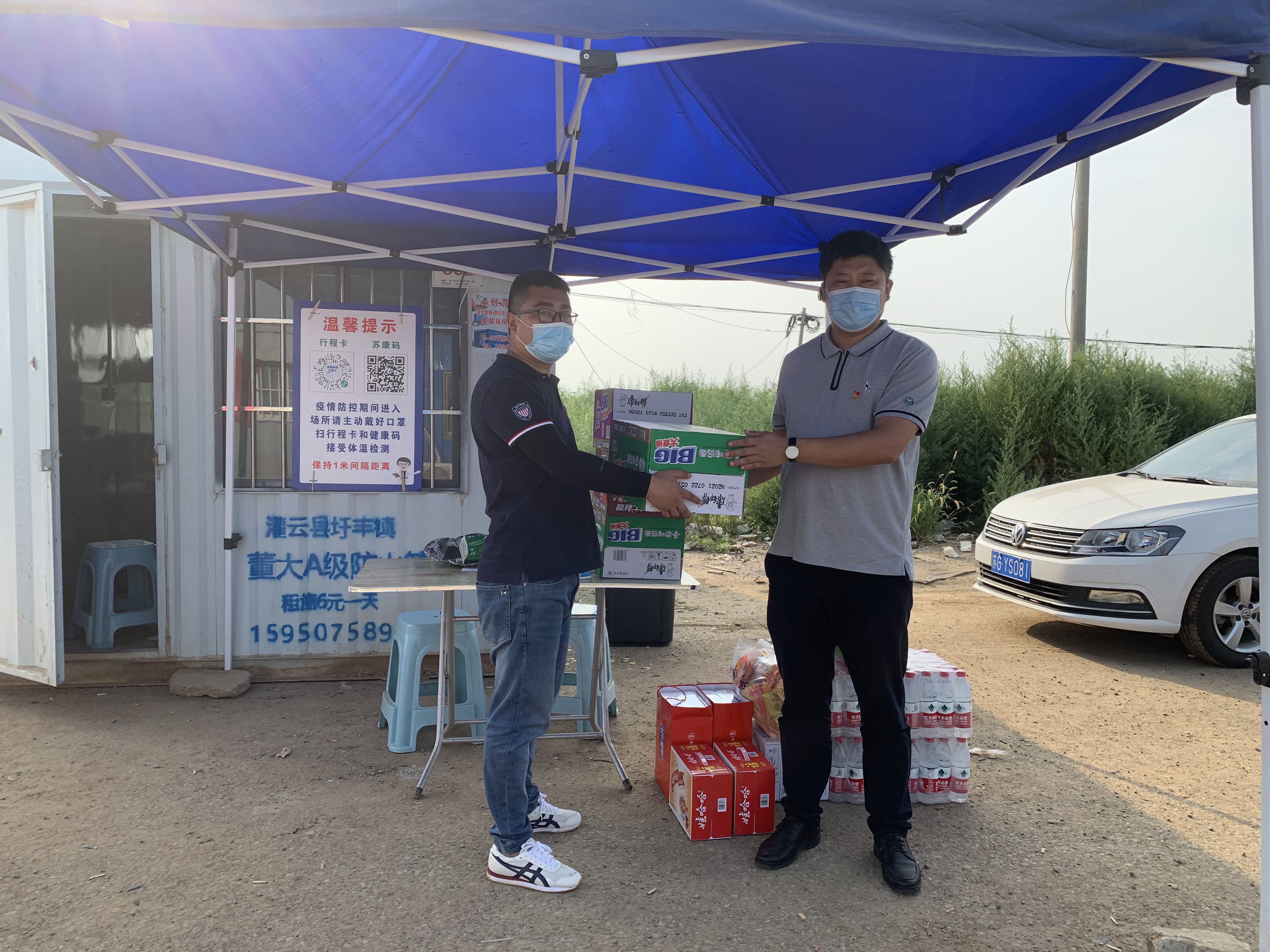 在各個(gè)路口卡點(diǎn),公司領(lǐng)導(dǎo)向始終堅(jiān)持在疫情防控一線的工作人員及志愿者們致以親切問(wèn)候和衷心感謝,叮囑大家要強(qiáng)化自我防護(hù),嚴(yán)格按照標(biāo)準(zhǔn)、程序、規(guī)范做好疫情防控工作,攜手共筑防疫屏障,并親手為他們送上、牛奶、八寶粥、方便面、蚊香等慰問(wèn)物資。(西工)