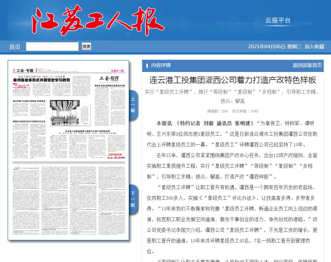 “星級(jí)員工評(píng)聘”讓職工晉升有機(jī)遇。灌西是一個(gè)擁有百年歷史的老鹽場(chǎng),在崗職工500多人,實(shí)施《“星級(jí)員工”評(píng)比辦法》,讓技高者多得、多勞者多得?!?0年來我們不斷摸索和完善‘星級(jí)員工評(píng)聘,暢通企業(yè)員工向上流動(dòng)的渠道,拓寬職工職業(yè)發(fā)展空間通道,激發(fā)干事創(chuàng)業(yè)的活力、爭(zhēng)先創(chuàng)優(yōu)的潛能?!痹摴军h委書記李國(guó)文介紹,灌西公司“星級(jí)員工評(píng)聘”,不光是工資的增長(zhǎng),更是職工晉升的通道。10年來共評(píng)聘星級(jí)員工93名,7名一線職工晉升到管理崗位。