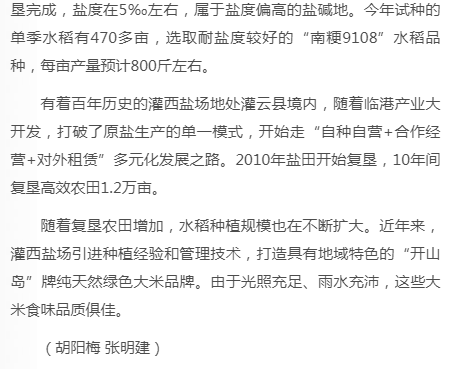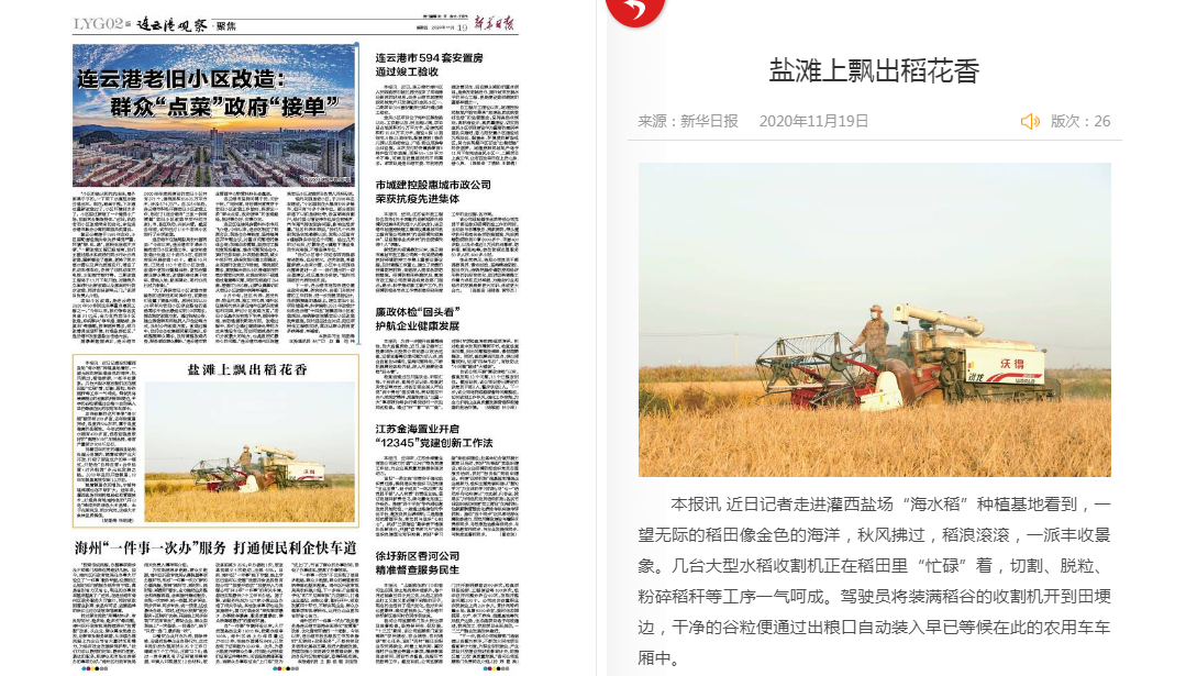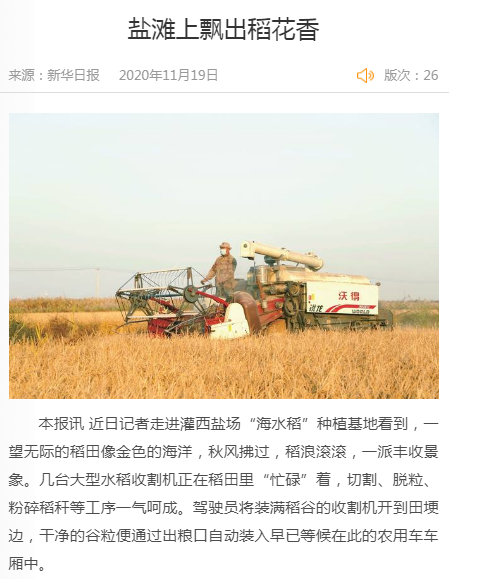 11月19日新華日?qǐng)?bào)報(bào)道灌西“海水稻”豐收盛況:《鹽灘上飄出稻花香》