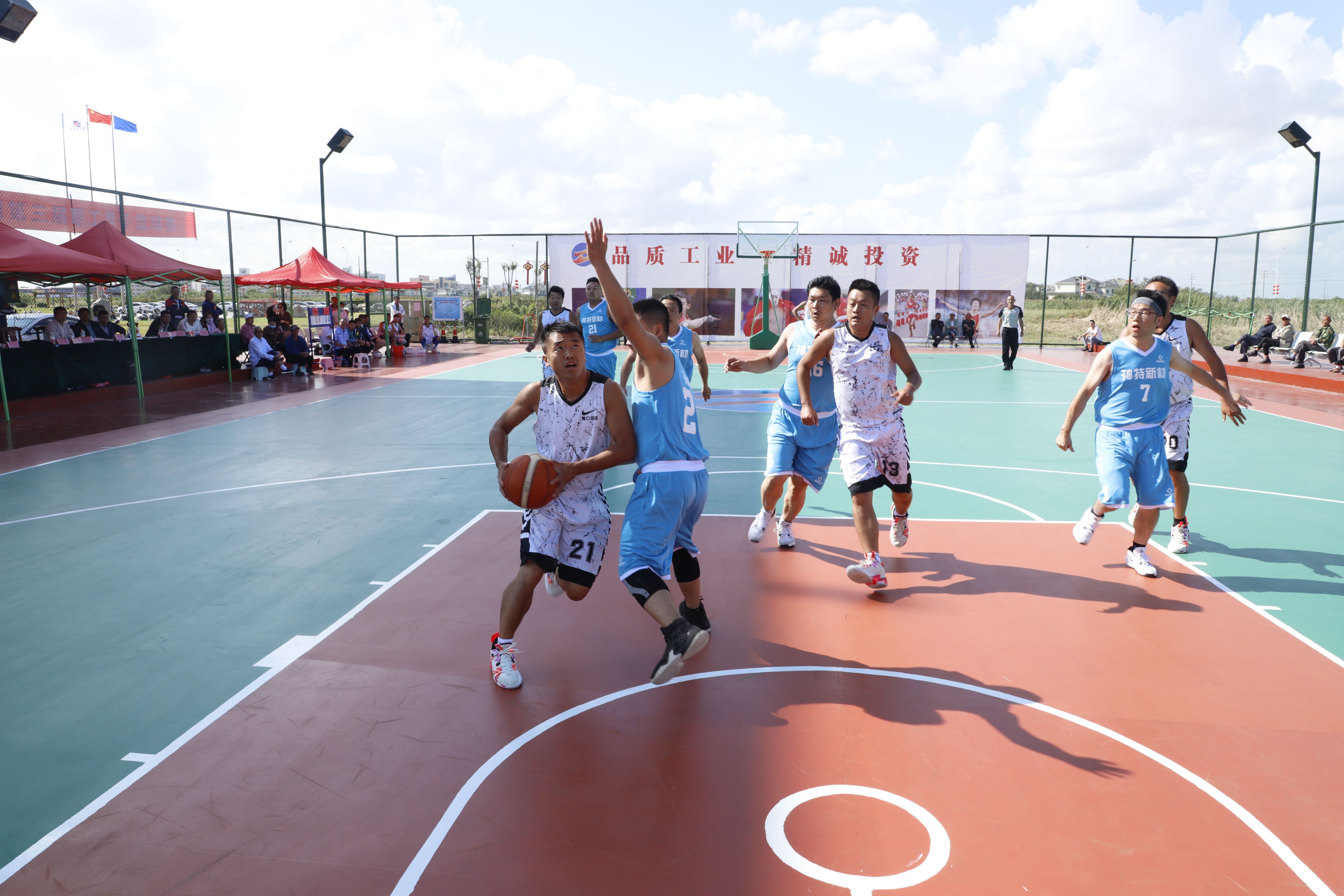 青口迎戰(zhàn)神特,雙方開場比較激烈,加強防守,互有進攻,但是得分不多。青口17號籃下得分;神特24號快攻得手,第一節(jié)以9:6結(jié)束;第二節(jié),青口繼續(xù)加強防守,針對神特24號重點盯防,收到效果,青口17號籃下連續(xù)得分,打出一波9:0的沖擊波;神特奮起反擊,24號3分命中,而后又制造青口數(shù)次犯規(guī),罰籃命中;第三、四節(jié)比賽,雙方分差達到20分,進攻節(jié)湊明顯加快,雙方失誤次數(shù)也增加,青口10號多次上籃得分;神特16號中投屢次得分,最終青口以57:41贏得比賽。