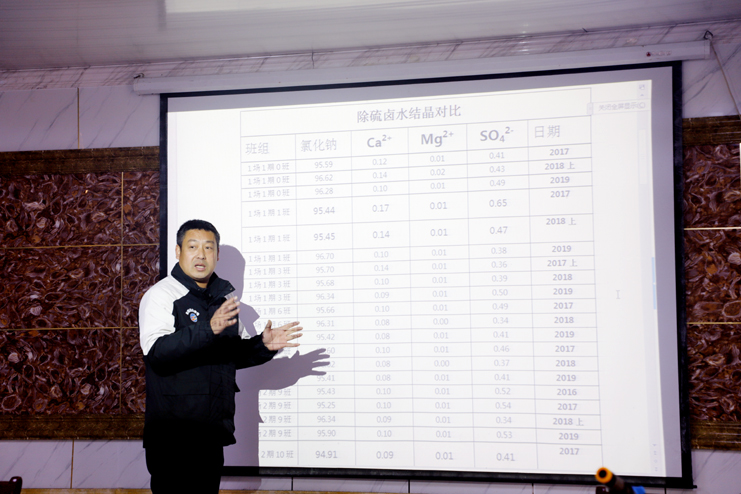 1月7日下午,日曬制鹽公司在生產(chǎn)服務公司會議室舉辦“冬訓”制鹽工藝培訓班。公司常務副總經(jīng)理古浩光,各制鹽分公司班組長及部分管理人員參加培訓。