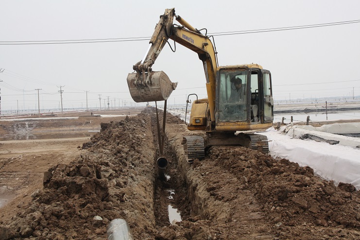 4月5日上午,日曬制鹽公司灘頭機(jī)械轟鳴,兩臺挖掘機(jī)正按照事先分工,有序的將深埋在地下的廢舊除硫管道挖掘出來。據(jù)了解,這些廢舊除硫管道按照原先設(shè)計,主要用于承擔(dān)鹵水除硫后的輸送工作,后因生產(chǎn)工藝的改進(jìn),導(dǎo)致管道一直處于閑置狀態(tài)。而此次回收并再次利用這些管道主要是為了在進(jìn)一步改進(jìn)生產(chǎn)工藝的基礎(chǔ)上,最大化節(jié)約生產(chǎn)成本。據(jù)介紹,目前日曬制鹽公司在生產(chǎn)中主要采取串聯(lián)式加鹵的方式進(jìn)行,除硫后的鹵水無論輸送至哪一格塊,都必須按照先后順序依次經(jīng)過前排格塊,這不僅大大降低了輸送效率,也不利于對鹵水的有效管理,更造成了一部分浪費。相比較而言,通過改串聯(lián)式加鹵為并聯(lián)式加鹵后,鹵水將會從除硫池直供缺鹵格塊,在提高供鹵效率的同時,也能夠有效降低跑冒滴漏現(xiàn)象的發(fā)生。