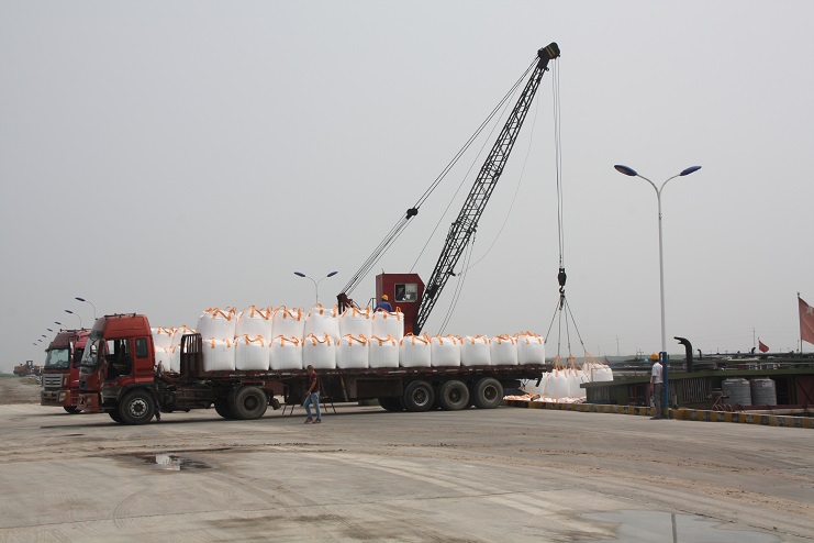 據(jù)了解,在國慶長假期間,該公司對各項工作做了充分的準備,加強節(jié)日期間碼頭正常運營管理,對碼頭工人進行了排班,對吊裝設(shè)備、裝卸人員進行細致的安排部署,確保了國慶長假生產(chǎn)經(jīng)營不停息。雨日過后,從3日開始,五灌河碼頭就是一派車水馬龍景象,只見一輛輛滿載噸袋的運輸卡車整齊的停放在路邊,一艘艘貨船在泊位上靜靜停泊等待,兩臺吊車正在進行著噸袋吊裝,掛鉤、移動、解鉤,車上船艙內(nèi)工人密切配合,動作熟練,將潔白的噸袋穩(wěn)穩(wěn)地裝船,每天吊裝噸袋30多車。在不遠處的自卸碼頭,一輛輛運鹽車輛,通過卸鹽滑板,直接將滿車斗的鹽倒入船艙,僅兩三天就裝鹽2000余噸。(季興勝)