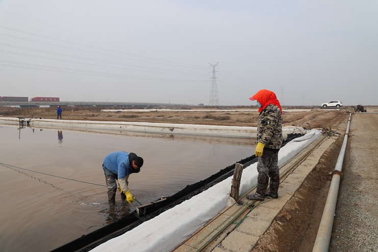 在日曬制鹽新河分公司零班生產(chǎn)現(xiàn)場,該班全體員工正在班長王興東的帶領(lǐng)下有條不紊的忙碌著,他們有的在對繩、有的在活碴、有的在破碴。據(jù)了解,由于近期夜間氣溫仍然較低,導(dǎo)致鹽池內(nèi)的原鹽結(jié)塊現(xiàn)象較為嚴(yán)重,且對原鹽質(zhì)量有較大影響,因此原本于25日開始的扒鹽工作現(xiàn)在已經(jīng)全部暫停,待氣溫進一步升高再繼續(xù)扒鹽工作。