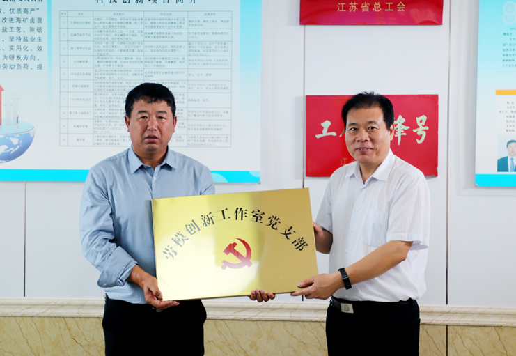 在日曬制鹽公司新河分公司的安樹林勞模創(chuàng)新工作室現(xiàn)場,丁書記一行觀看了技術創(chuàng)新成果展示專題片,還為工作室的“勞模創(chuàng)新工作室黨支部”進行了授牌。