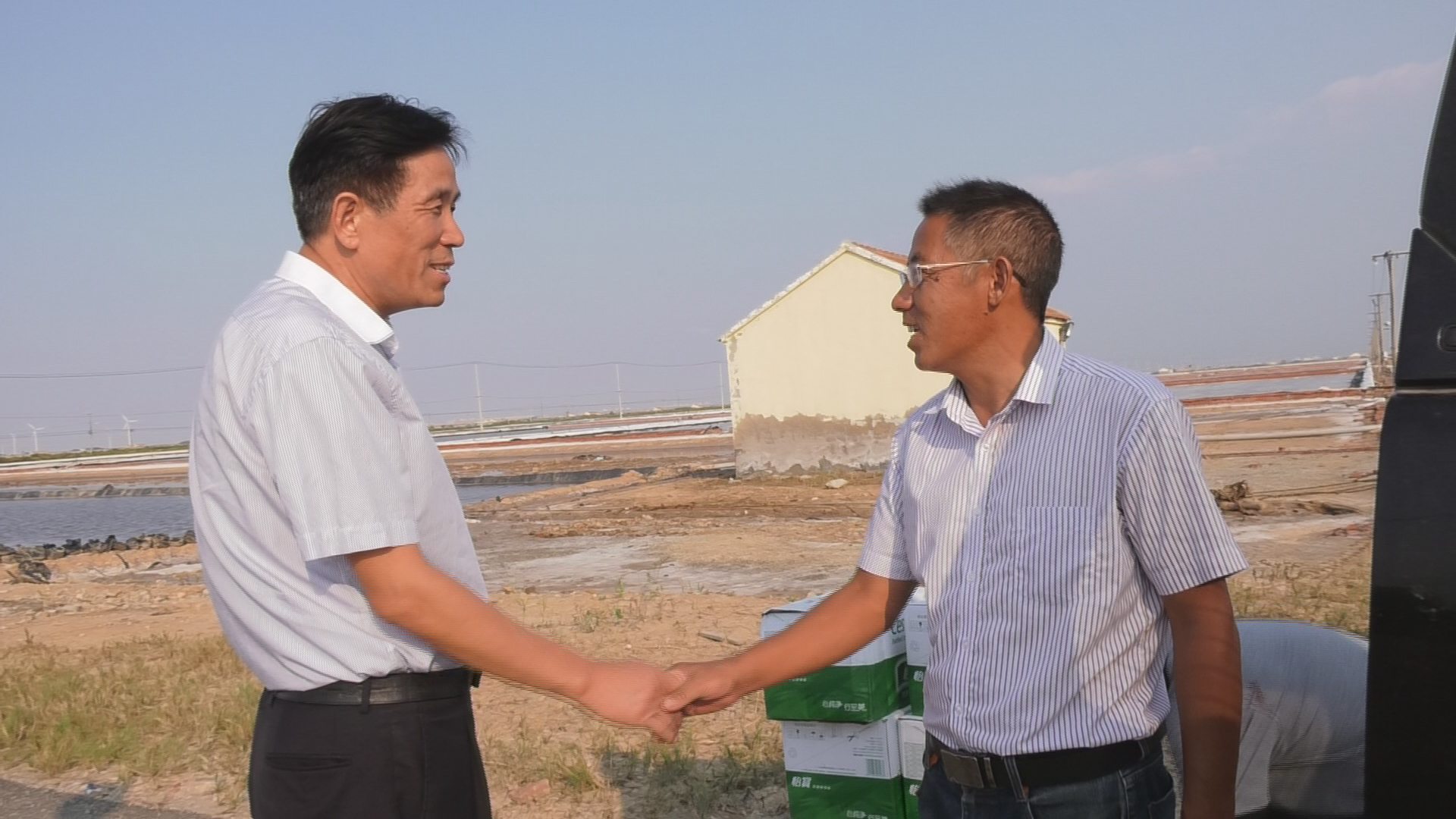 9月28日,西旺水產(chǎn)公司總經(jīng)理茆慶軍在投資公司副總經(jīng)理古浩光的陪同下,慰問(wèn)日曬制鹽公司的扒鹽機(jī)組,向堅(jiān)守扒鹽崗位辛勤工作的員工表示感謝。