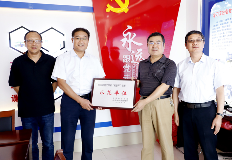 調(diào)研期間,陳健還為集團“2018年度江蘇省‘安康杯’”競賽示范單位、祝星星“勞模創(chuàng)新工作室”進行了授牌。(張明建)