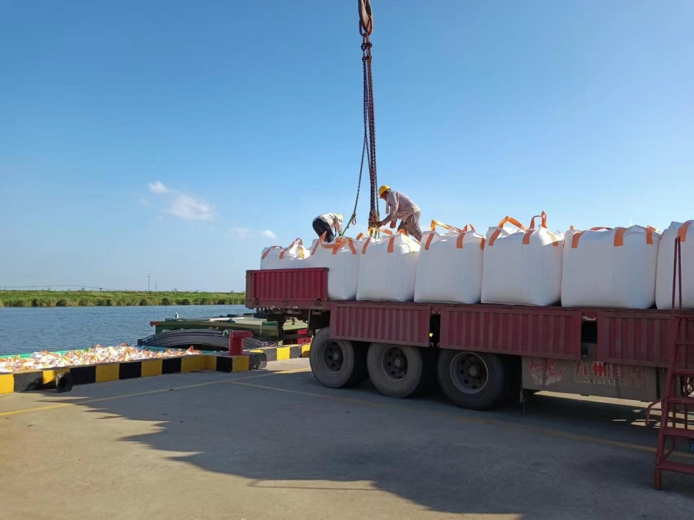 在火辣辣的太陽無情地照射下,一群勤勞的碼頭工人們正在調(diào)度著車輛和船只的進出,確保噸袋運輸過程的順暢無阻。另外幾個工人正操縱著高大的吊機,他們小心翼翼地裝卸著貨物,每一個動作都顯得格外謹慎。整個碼頭被一種熱烈而緊張的“高溫”氛圍所籠罩,仿佛連空氣都因為這份熱情而變得灼熱起來。