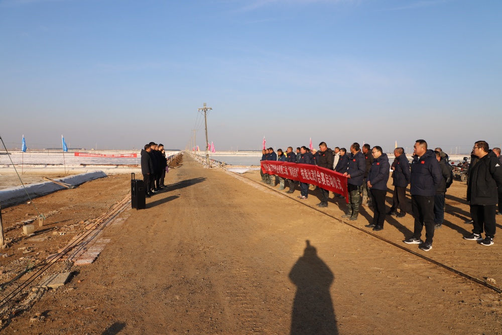 在新河制鹽分公司5班灘頭,總經(jīng)理吳衛(wèi)平作動(dòng)員講話,裁判長沈玉波宣誓,董事長孫政權(quán)宣布“‘薪火灌筑 匠星西傳’師徒結(jié)對擂臺賽”正式開始!