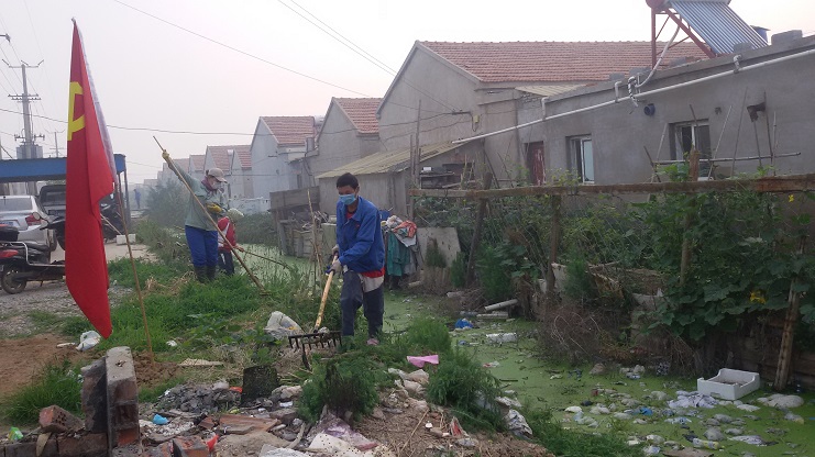 6月20日早6點15分,在中二圩順水道及排水溝兩側已經站滿了或用鐮刀除草或用釘耙打撈漂浮物的人,用力揮舞著手中工具干的熱火朝天。這是埒南制鹽分公司全體黨員和在職員工響應投資公司黨委號召在開展環(huán)境整治活動。