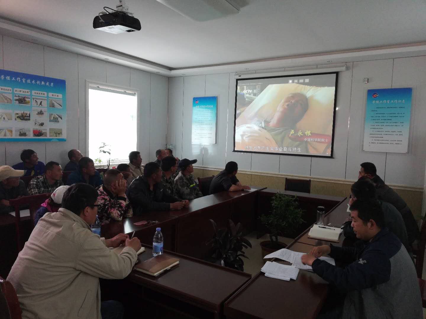 4月25日下午,新河黨支部召集全體黨員在勞?;顒?dòng)室觀看《感動(dòng)中國2017年度人物》系列短片。