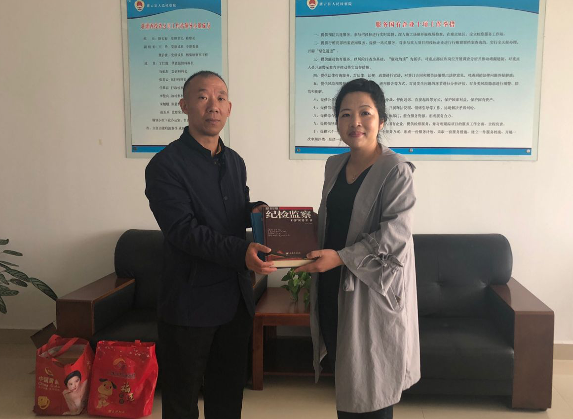 10月17日,灌云縣檢察院監(jiān)察室主任范玉兵來我公司調(diào)研工作,進(jìn)一步加強檢察院與企業(yè)溝通和了解,促進(jìn)“檢企共建”活動深入開展。
